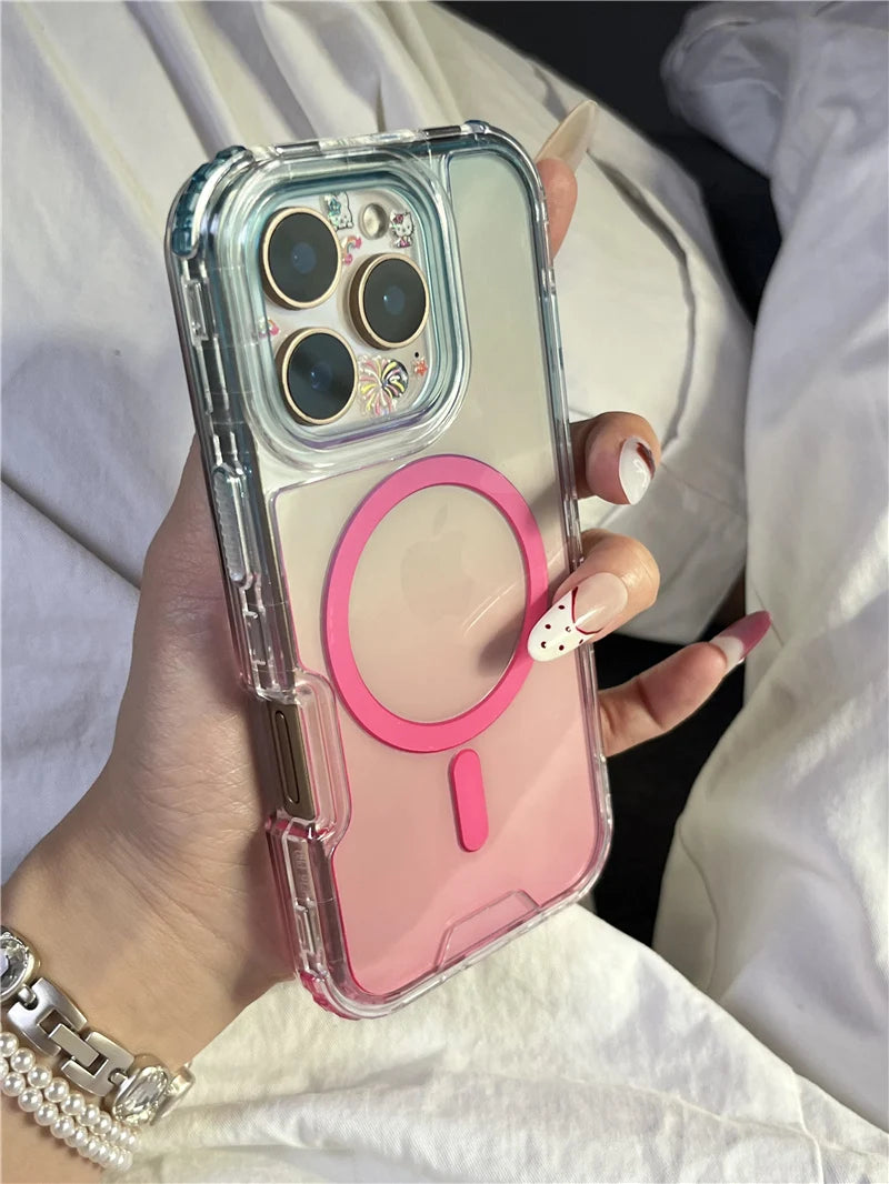 3-in-1 Gradient MagSafe Magnetic Clear Case for iPhone 16, 15 Pro, 14, 16 Pro Max