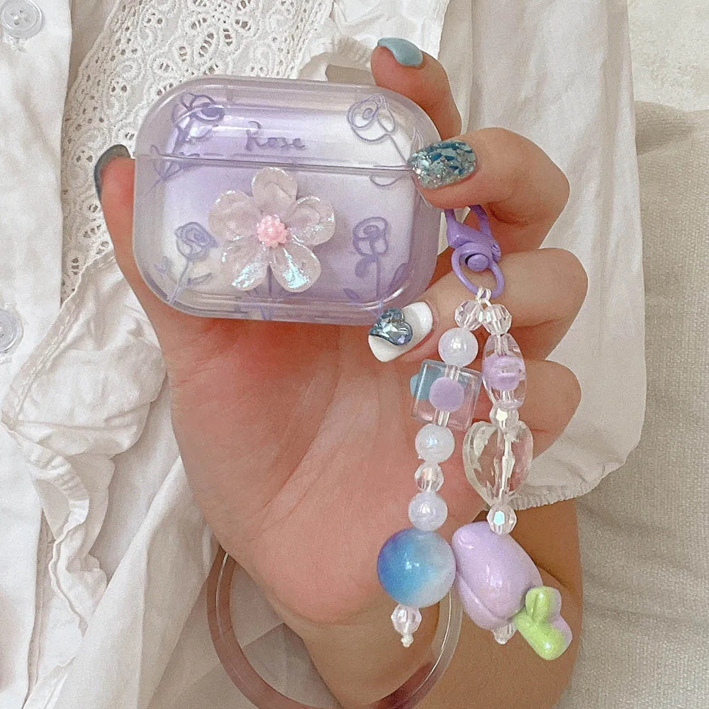 3D Flower Soft TPU AirPods Case for Pro 2/4, 1–4 – Purple Rose with Keychain