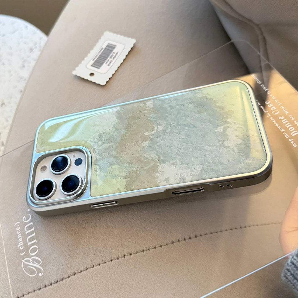 Art Green Gradient Oil Painting Drop Glue Case for iPhone 16 15 14 13 Pro Max