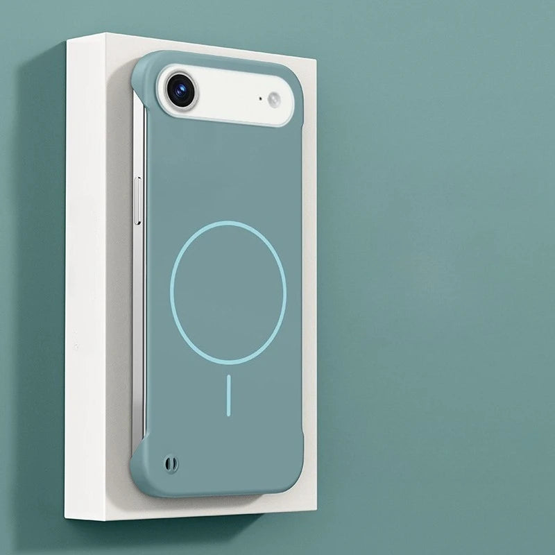 Frameless hard magnetic phone case with a sleek bezel-less design, delivering ultra-thin protection, strong MagSafe compatibility, and a clean minimalist look for iPhone 17 Air and iPhone 17 Pro Max.