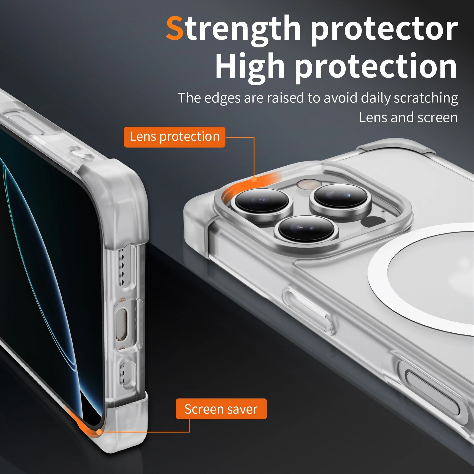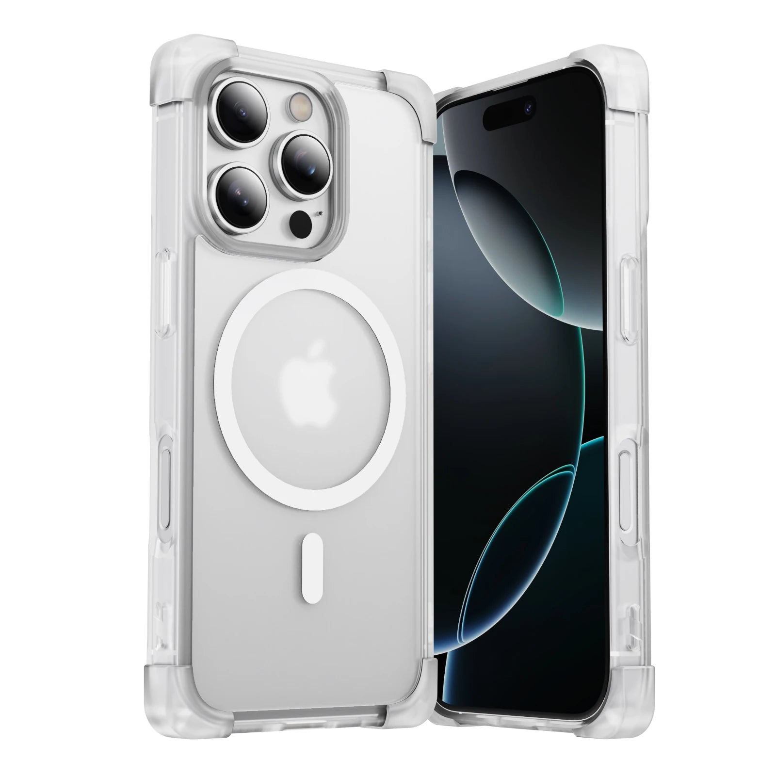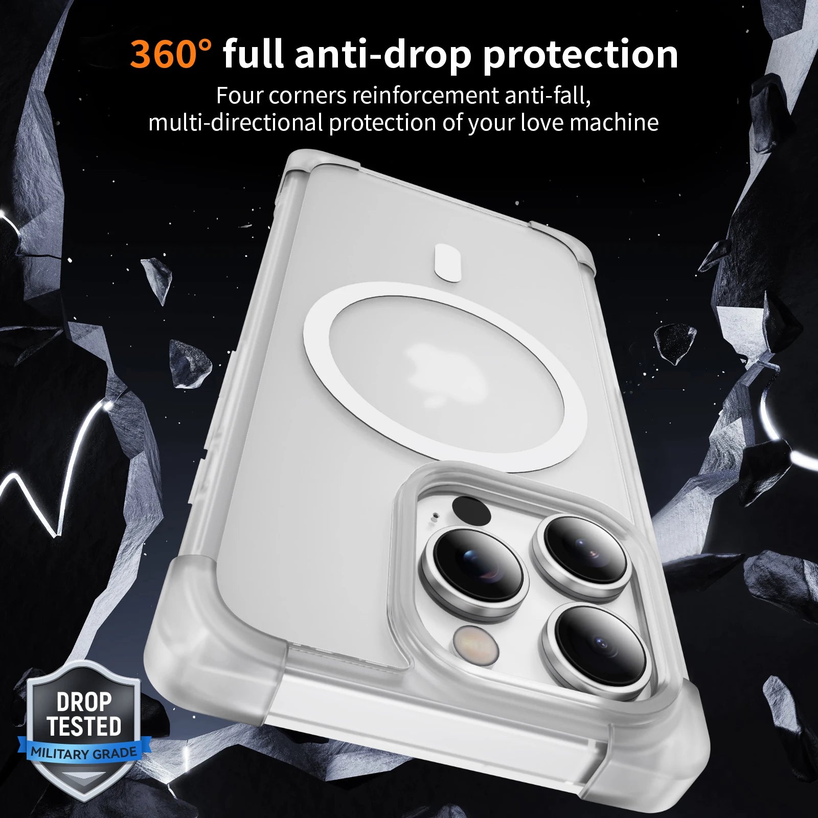 Shockproof matte armor case with transparent hard acrylic back. Supports MagSafe wireless charging. Durable, slim fit for iPhone 16, 15, 14, 13, 12, 11 Pro Max & Plus.