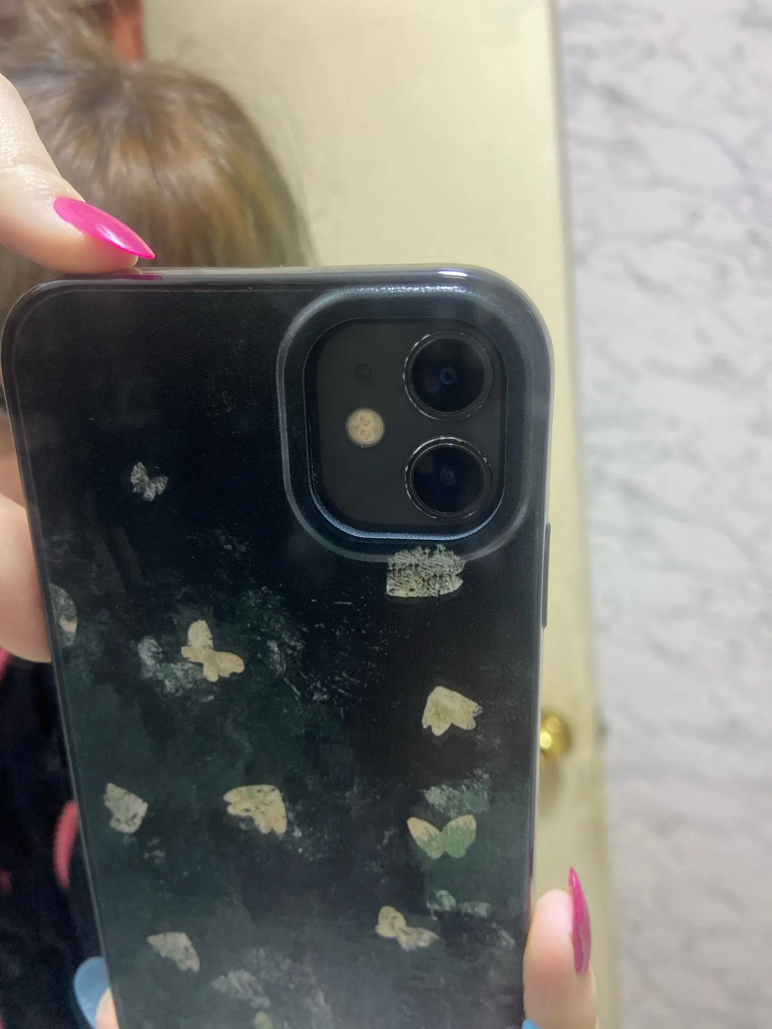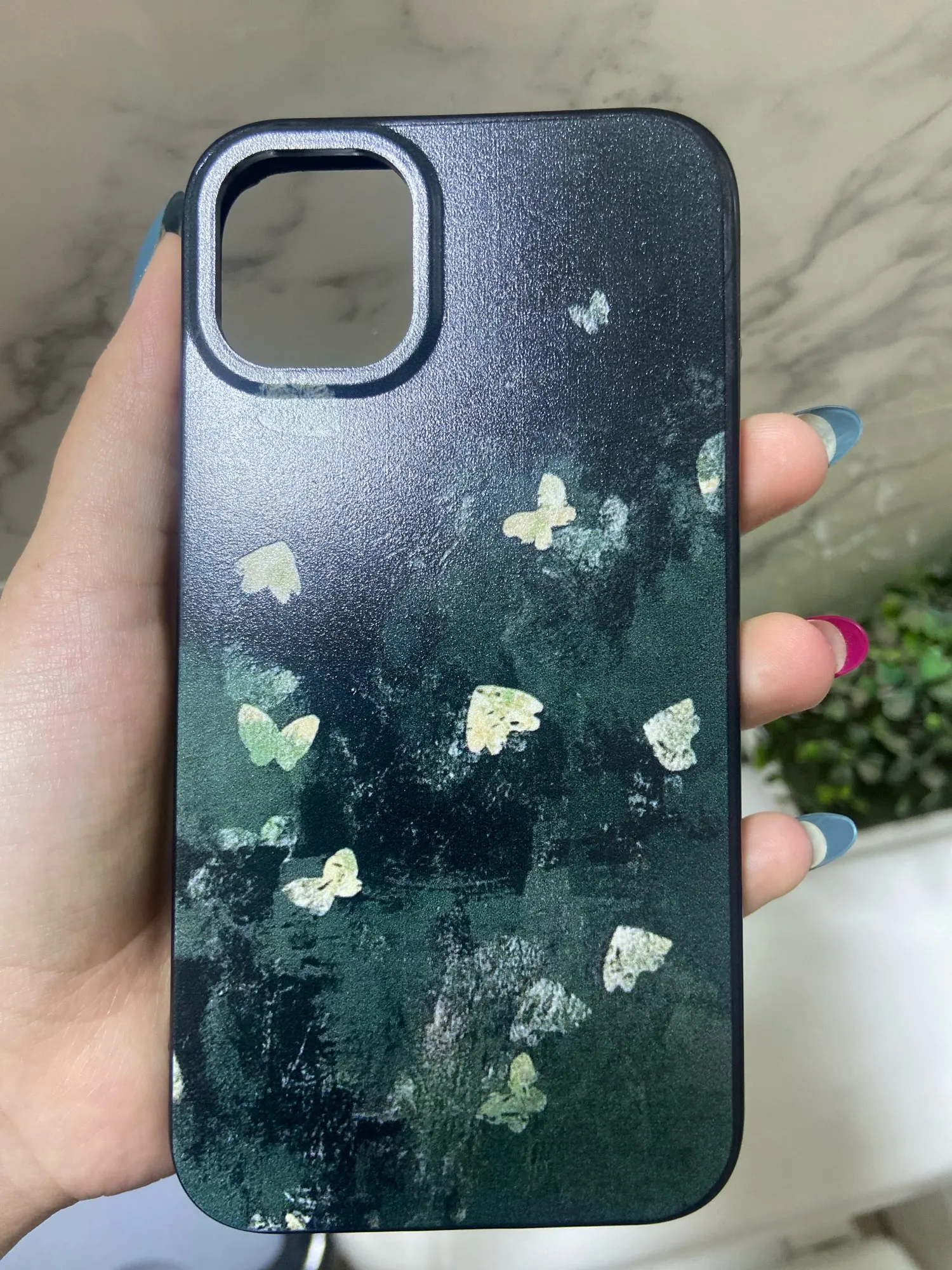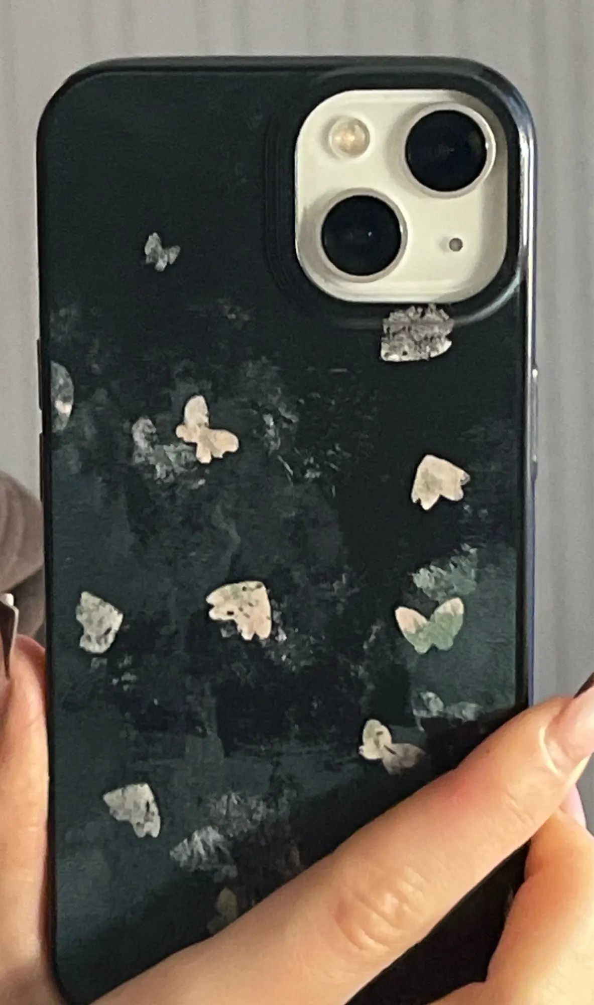 Add a dreamy, nostalgic vibe to your phone with this Korean-inspired black butterfly case.