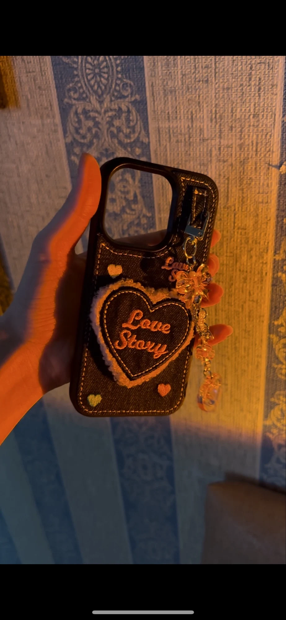 Add a stylish Y2K flair to your iPhone with this denim-inspired case featuring a heart pendant keychain—perfect for expressing personality and protecting your phone.