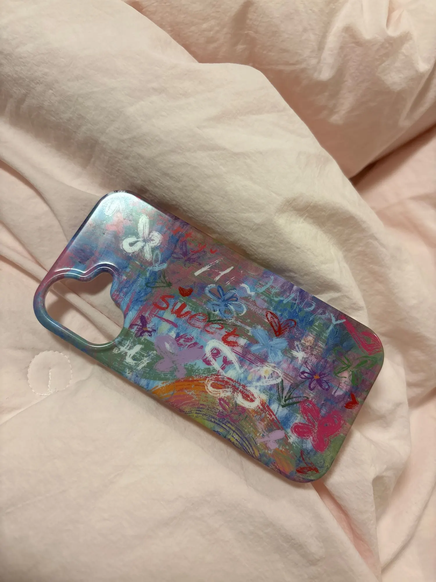 Add bold street style to your iPhone with this Korean-inspired graffiti flower phone case.