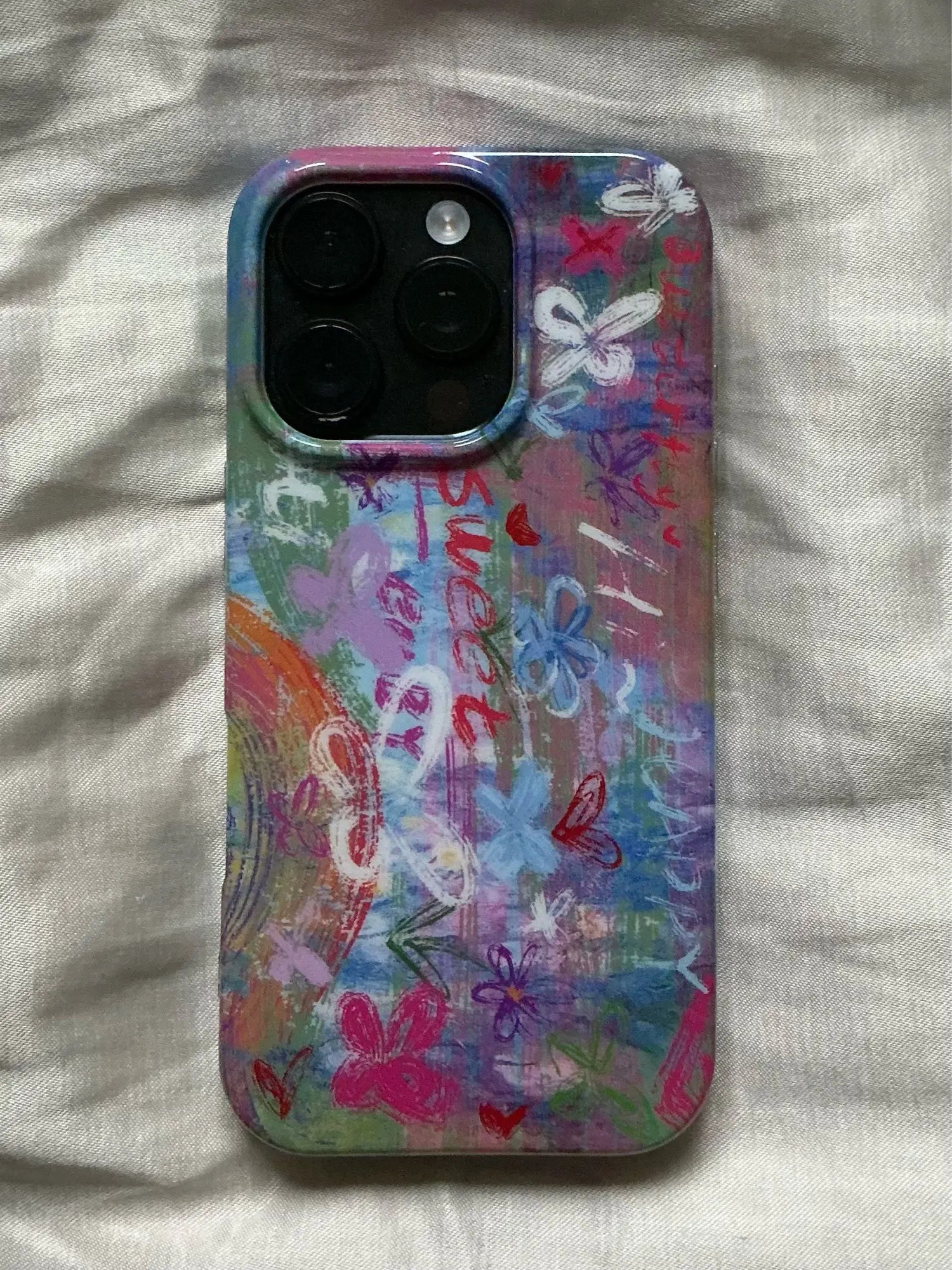 Korean Graffiti Flower Double-Layer Case for iPhone 16 15 14 13 12 Pro Max