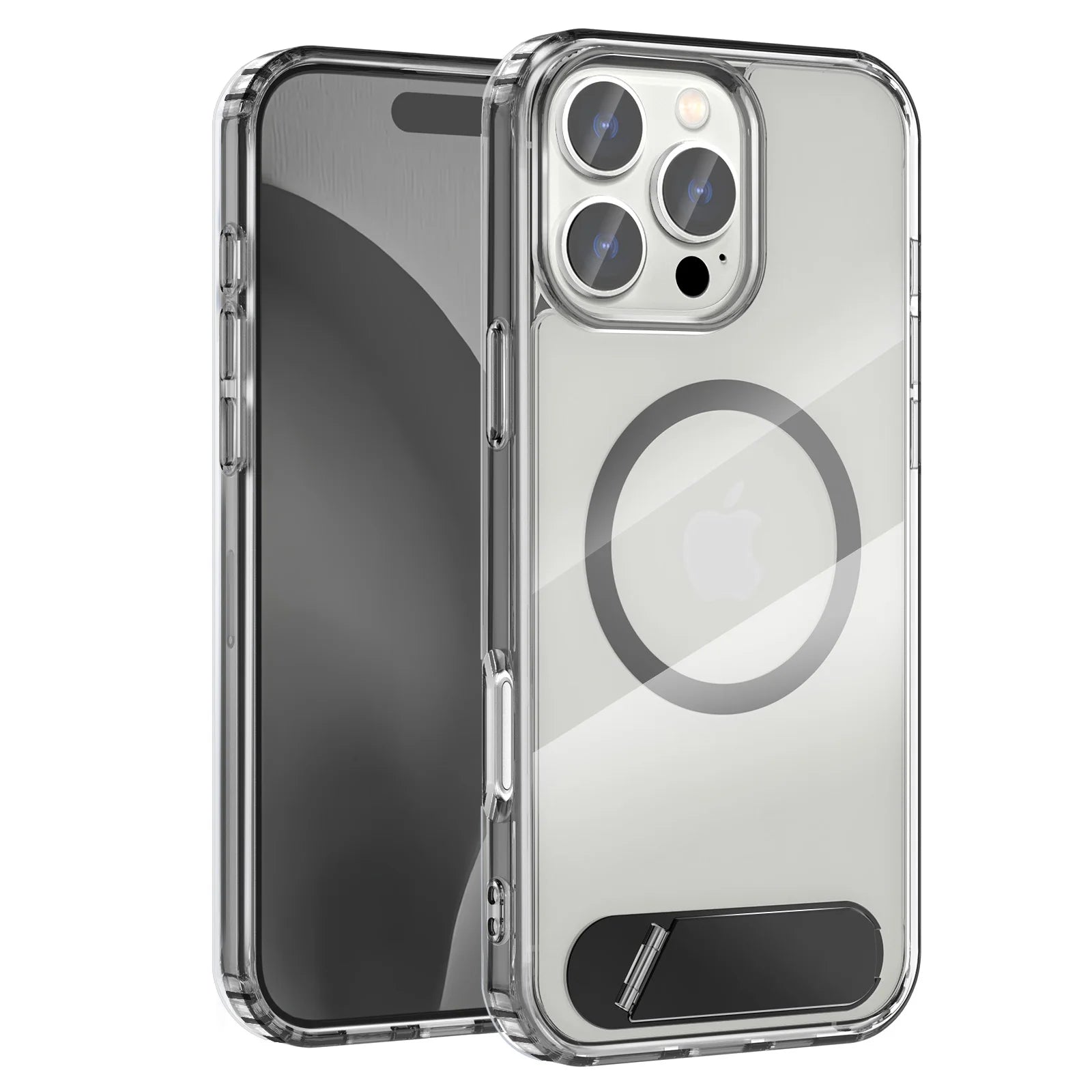 Clear Magnetic iPhone Case with Folding Metal Stand for 13–16 Pro Max