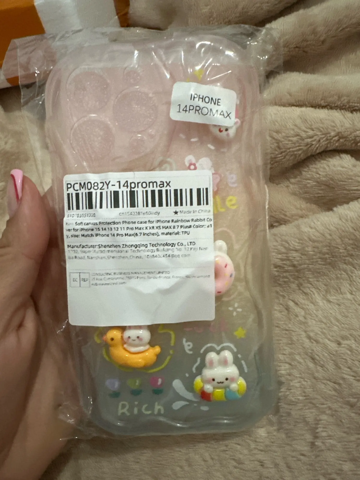 Bring a burst of color and fun to your phone with this soft cartoon rainbow rabbit phone case. Designed for iPhone 11, 12, 13, 14, 15, 16, and Pro Max models, this case offers playful protection with a cute, vibrant design.